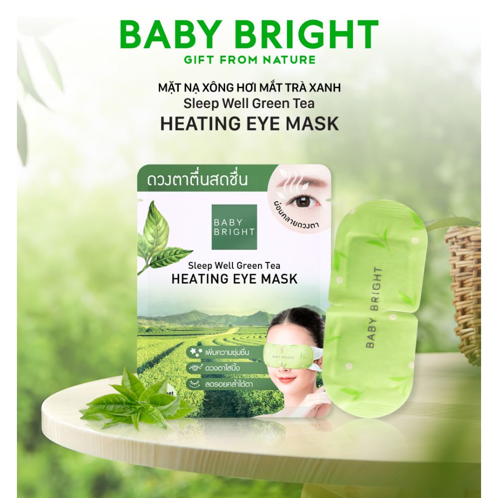 Baby Bright Sleep Well Green Tea Heating Eye Mask 1 Sheet Nourish with a heating eye mask. Gently care for the skin around your eyes. It's like having an easy eye spa at home. The eye mask's warm temperature is suitable and does not harm the eyes. Nourish the skin around your eyes to make them bright again. Relax with natural essential oils. The scent of green tea helps you sleep comfortably and rest your eyes completely.